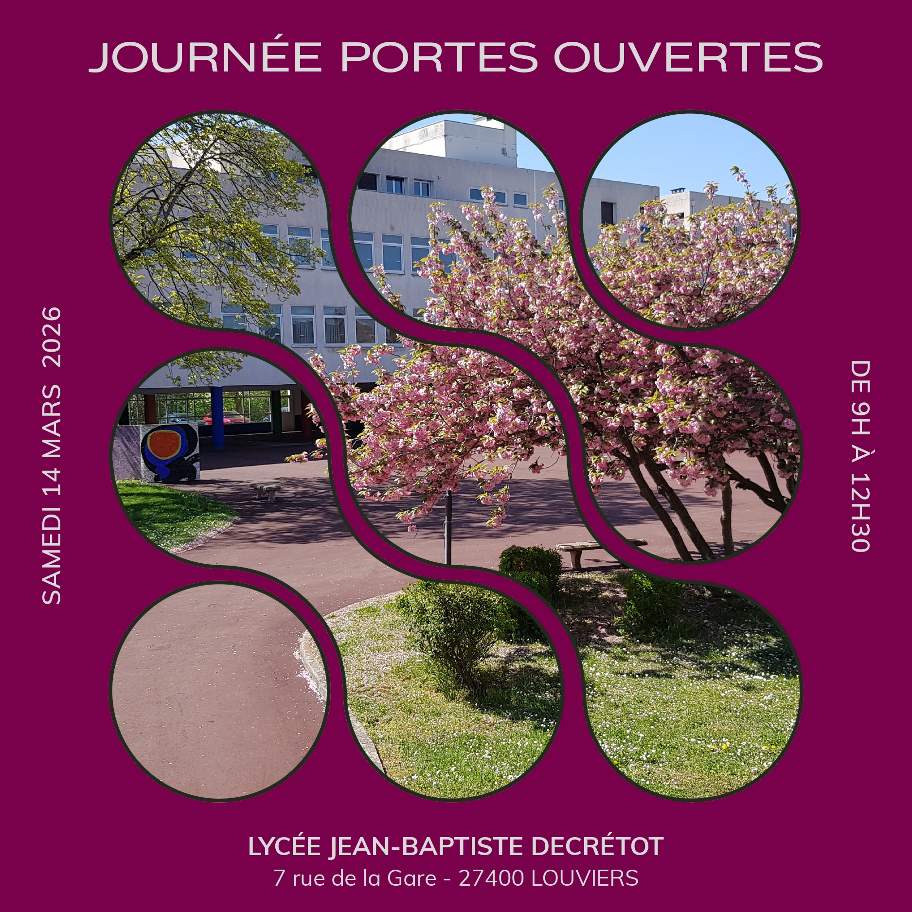 Le lycée Jean-Baptiste Decrétot vous invite à sa journée portes ouvertes du samedi 14 MARS 2026 pour découvrir l’ensemble de ses formations en initial ou en apprentissage.